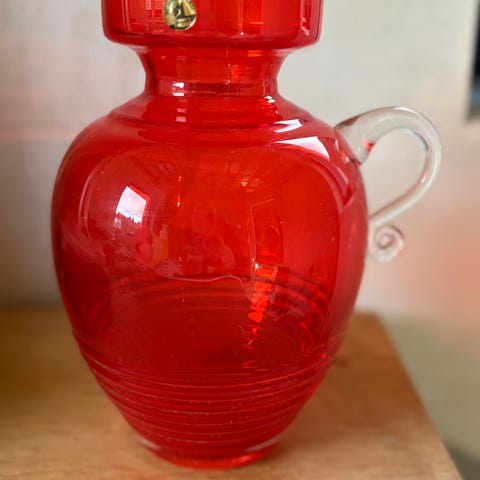 Punainen, 20cm korkea Tamara Aladinin Kleopatra maljakko. Täysin ehjä. Tahra maljakon sisällä (näkyy kuvassa), ei ole yritetty poistaa. Todnäk poistettavissa kuitenkin. Ei Toridiiliä. Nouto tai särkyvänä postitus onnistuu. Postikuut ostajalle. Pakkausvaiheesta voin lähettää myös ostajalle videon mistä näkee tuotteen lähtevän matkaan ehjänä. Riihimäen Lasin tarra löytyy maljakosta.
