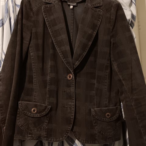 Keväinen, rypytetty pleiseri housupuku, koristetikkauksilla. Kevyt ja ilmava pitää.