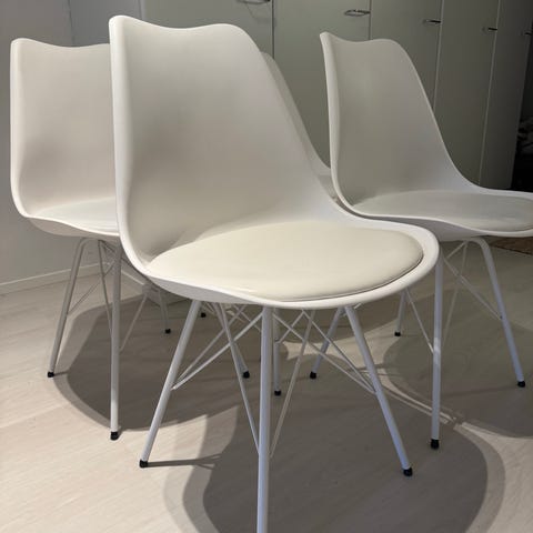Myydään käytöstä uusien tieltä valkoisen keinonahkaiset ruokapöydän tuolit 4 kpl. Käytönjälkiä löytyy, mutta siistit. Tuolit pyyhitty huolellisesti ennen myyntiä. Koiratalous.