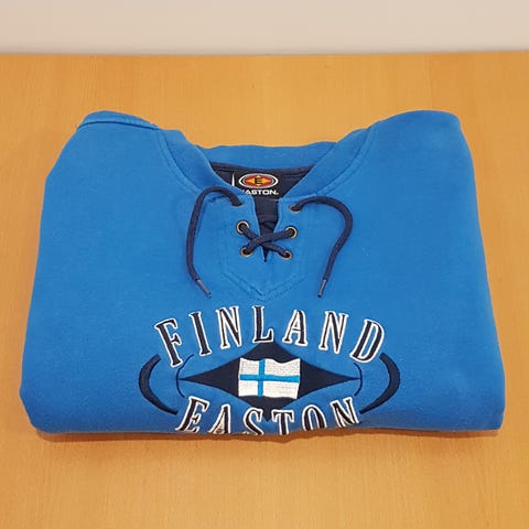 Hyvä, laadukas ja vähän käytetty collegepaita kokoa 48 S. Olka-helma pituus on n. 63 cm, kainalo-kainalo mitta on n. 57 cm. Kätevä vetoketju edessä ja rintatasku. Paidan materiaali on 100 % puuvillaa.