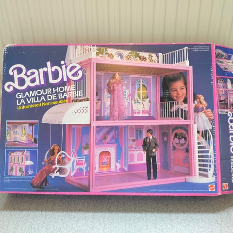 Mukana tulee muutamia barbie huonekaluja. Kunto muuten hyvä paitsi ylimmässä kerroksessa pieni osa lattiasta revennvt pala pois Kuvissa näkyy
