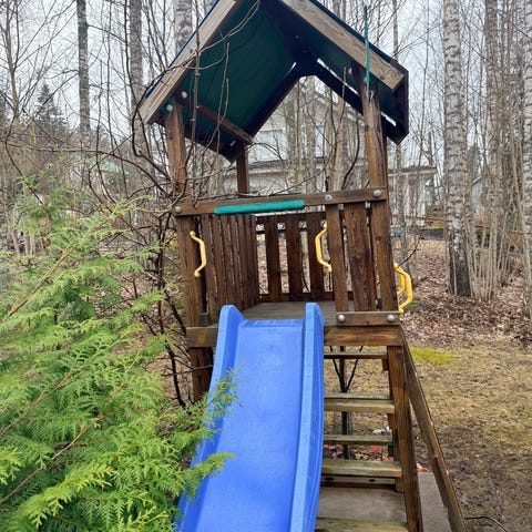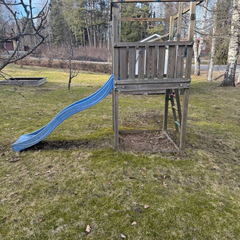 Jungle Gym ulkoleikkipaikka, erillinen hiekkalaatikko kannella, keinut