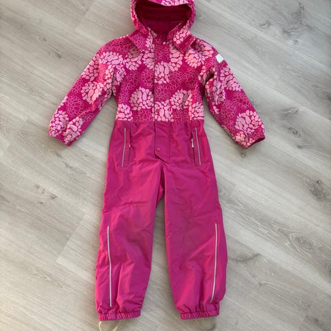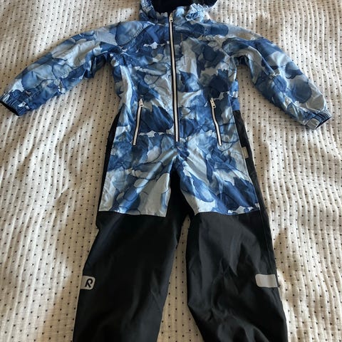 Myydään Reiman keväthaalari koossa 122. Yleisilmeeltä siisti ja ehjä. Polvissa pehmentymää, heijastimissa kulumaa ja kiinnityslenksu ommeltu käsin uudestaan kiinni toisesta reunasta.