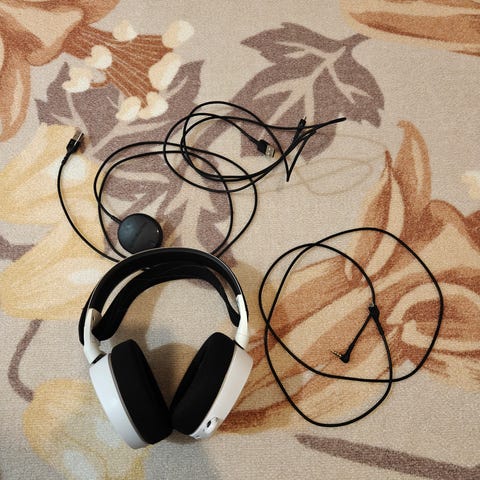 Myyntiin vanhaksi jääneet 8 vuotta palvelleet ja edelleen moitteettomasti toimivat pelikuulokkeet. Mikrofonin sangan muovipinta on hieman haljennut (näkyy kuvassa), mutta ei vaikuta mikrofonin toimivuuteen tai äänenlaatuun. Akut ovat tietysti kuluneet. Pitävät latausta ehkä noin 5 tuntia per akku. Käyttöä tietysti helpottaa, että telakassa latautuneen akun voi lennosta vaihtaa jolloin pelit eivät keskeydy tai häiriydy latauspiuhan takia. Korvapehmusteet ovat vaihdettu uusiin noin 2 vuotta sitten ja ovat hyvässä kunnossa. Telakan oled-näytössä pientä kiinnipalamista ja erikoista käyttäytymistä ajoittain. Korjaantuu kuitenkin aina kun käynnistää uudelleen.