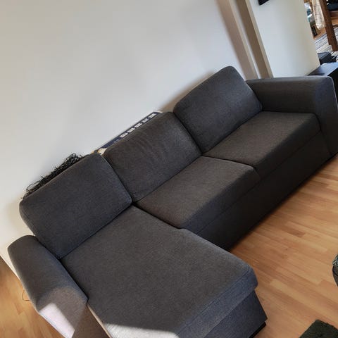 Harmaanruskea divaanisohva koivujaloilla. Divaaniosa siirrettävissä myös toiselle puolelle. Erittäin hyvässä kunnossa (ei ole ollut lemmikkitaloudessa). Ostettu Stemmasta helmikuussa 2025, myydään muuton vuoksi. Ovh 669€.