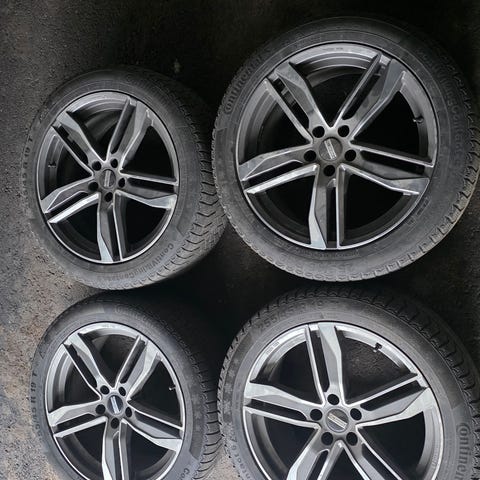 Kaksi hyvää viime vuonna uusittua rengasta, kaksi huonompaa, tämän kesän ajelee näillä ihan hyvin. Yksi on nypitty nastarengas.