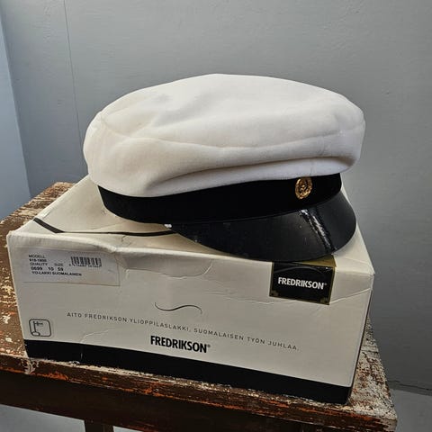 Myydään uudenveroinen Fredrikson ylioppilaslakki. Koko 57. Mukaan tulee laatikko ja suojapussi.