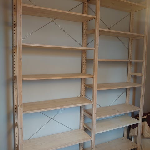 IKEA:n Ivar-sarjan jalusta. Käsitelty Osmocolor-puuvahalla sävyllä kuusi. Jalustoja on kaksi kappaletta, yht. 30€.