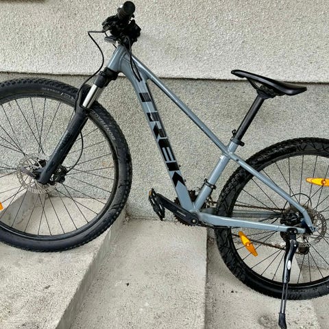 Trek maastopyörä unisex-käyttöön. Runkokoko S ja 27.5" kiekot. Värinä turkoosi runko mustilla yksityiskohdilla. Pyörässä on levyjarrut edessä ja takana, jäykkä etuhaarukka sekä maastorenkaat. Ohjaamossa on suora tanko ja Shimano-jarrukahvat. Soveltuu maastoajoon ja yleiseen arkiajoon käyttäjälle, jolle S-kokoinen runko ja 27.5" renkaat ovat sopivat.