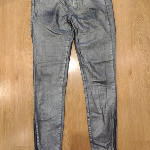 Koko XS, mutta kangas todella joustavaa, joten menee helposti eri kokoisille. Olen itse kokoa 40-42 ja mahtuvat jopa minulle. Kankaassa on joitakin käytön merkkejä esim. pientä nukkaa vasemman taskun alla ( kuvassa ).