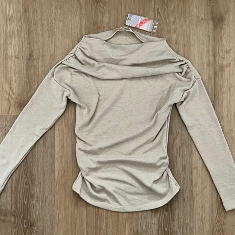 OGL:n uusi ruskea pitkähihainen toppi (käytetty kerran, mutta väri ei sovi minulle). Siinä on venepääntie ja sisäänrakennetut rintaliivit (irrotettavalla pehmusteella). Se on OGL:n erityinen Eco-Mousse-sarja, joten se on erittäin pehmeää ja kaksivuoraista materiaalia. Se pitää sinut lämpimänä, joten se on täydellinen keväällä tai kylmemmällä säällä