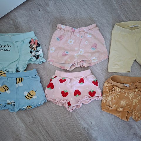Hyväkuntoiset shortsit seuraavalle käyttäjälle. Ylimmät shortsit H&M koko 80 ja 86, alin Sinsay 86. Kaikkia käytetty samaan aikaan.