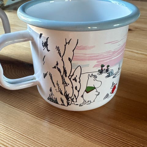 Hyväkuntoiset emalimukit Muumi,Minni