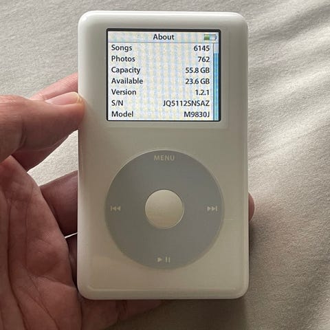 Toimiva Apple iPod Classic MP3-soitin, tallennuskapasiteetti 160 GB. Hopeanvärinen etupuoli ja kiiltävä metallinen takakuori. Paksu malli, mukaan Usb-latausjohto/datakaapeli (30 pin - USB-A)