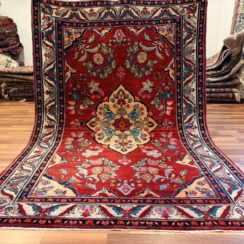 Myynnissä upea ja arvokas käsinsolmittu persialainen Isfahan-matto, joka on arviolta 60–70 vuotta vanha. Kyseessä on puoliksi antiikkinen matto, joka edustaa korkeatasoista perinteistä käsityötä ja ajattoman tyylikästä designia.