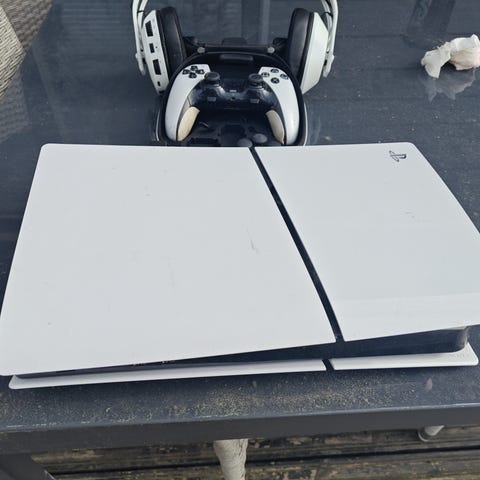 Sony PlayStation 5 pelikonsoli valkoisena. Mukana yksi DualSense-ohjain sekä virtajohto ja USB-kaapeli. Konsoli soveltuu PlayStation 5 -peleille ja yhteensopiville lisälaitteille. Tarkemmat tekniset tiedot, kuten tallennustilan koko ja malli (levyasema/digitaalinen), kannattaa varmistaa valmistajan tiedoista tai laitteen asetuksista.