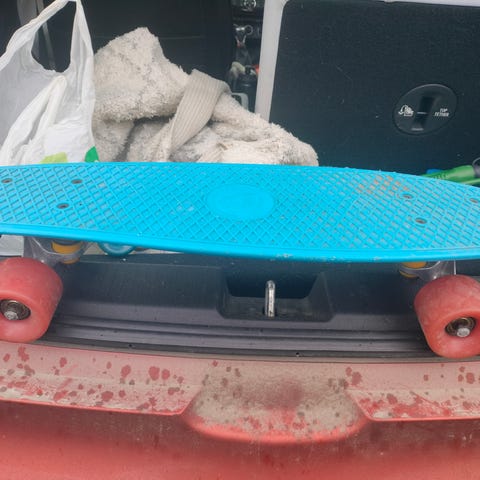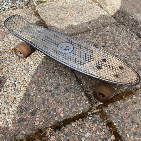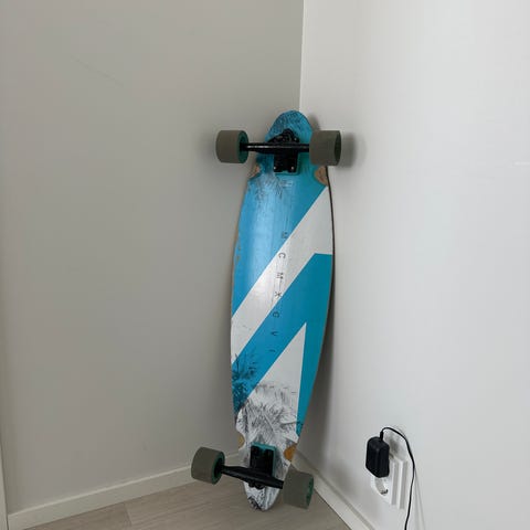 Käytetty longboard. Hiukan ottanut osumaa mutta täysin toimiva vielä. Tästä vaikka alkuharjoitteluun. Pitkiin rullauksiin/kaartoihin, rullaa pehmeästi. Lauta 23 cm levein kohta.