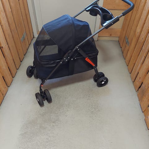 Lemmikkirattaat koiralle, kissalle tms. Tosi kevyet ja näppärät, menee nopeasti pieneen kasaan vetämällä sivuissa olevista vivuista ja painamalla kasaan. Pestävät kankaat. Ehjät ja kunto todella hyvä, verkoissa voi olla jotain nukkaantumista tms.
