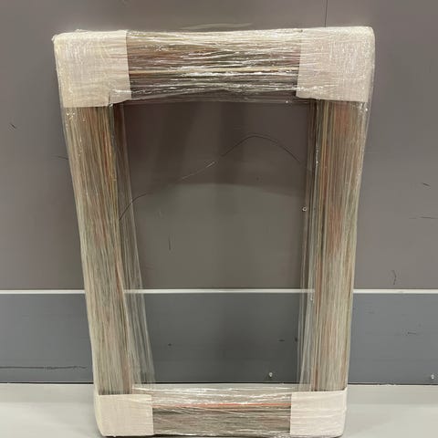 Metallinen kehys, jossa kulumaa (ks kuvat) pysyy koottuna, mutta ei ole kiinnikkeitä, joilla saisi kulmat lukittua. Kehyksen väliin saattaisi saada canvaksen.