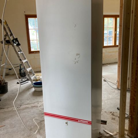 Nibe VPA varaaja. Valkoinen ulkokuori ja eristetty sisäsäiliö, kupariputkiliitännät yläosassa. Soveltuu käyttöveden tai lämmitysjärjestelmän veden varaamiseen esimerkiksi lämpöpumppujärjestelmissä tai puukattilan yhteyteen, vain mielikuvitus on rajana. Tarkemmat tekniset tiedot, löytyvät laitteen tyyppikilvestä. Varaaja on ei ole uusi ja on käytetty, ollut aiemmin maalämpöpumpun yhteydessä, mutta laitteiston uusimisen yhteydessä jäi tarpeettomaksi.