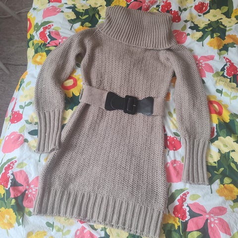Vilan neulepaita, koko S, ruskea, glittereitä. Naisten pitkähihainen neule, jossa pyöreä pääntie edessä ja selkäpuolella avoin leikkaus ristiin menevällä helmalla.