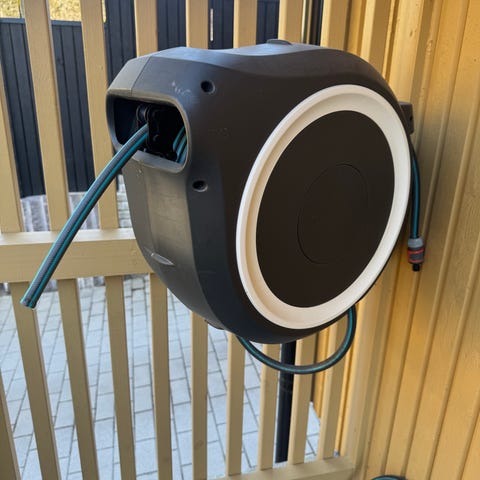 25m seinään kiinnitettävä uusi täysin käyttämätön 13mm letkulla 1/2",kaikki liittimet ja pistoolit mukana ,kelautuva 180 astetta.