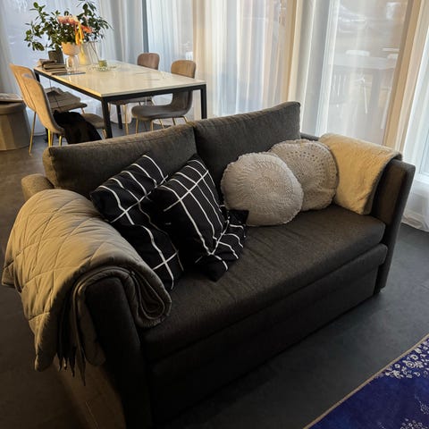 Myydään hyväkuntoinen kahden istuttava vuodesohva. Toimii erinomaisesti sekä sohvana että vierasvuoteena.