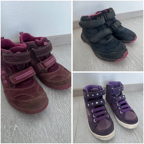 Vk käytössä olleet Warpin tennarit/lenkkarit. Ok kunto. Kokomerkintä kulunut. Vieressä Vikingin 27 kokoiset välikausikengät viimeisessä kuvassa. Ehkä inan niitä isommat.