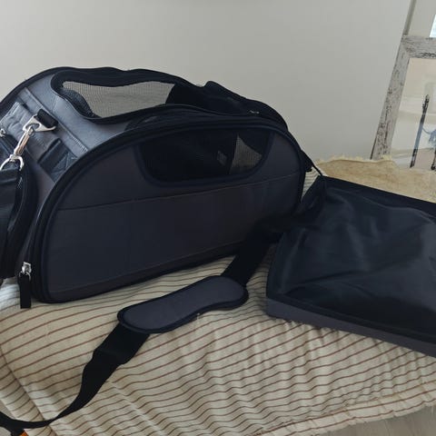 Muutaman kerran käytetty Sherpa laadukas lentoyhtiöiden hyväksyma kuljetuslaukku. Ilmava niiausominaisuus kätevä etuistuimen alla. M koko.
