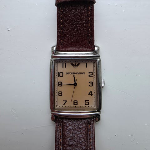 Käytetty Armani ax2101 miesten rannekello teräsrannekkeella. Kellossa on musta pyöreä kellotaulu, jossa on viiva- ja roomalaiset numeromerkinnät sekä päivämääränäyttö. Kelloon on juuri vaihdettu uusi ranneke joka ei ole nahkainen niinkuin alkuperäinen on.