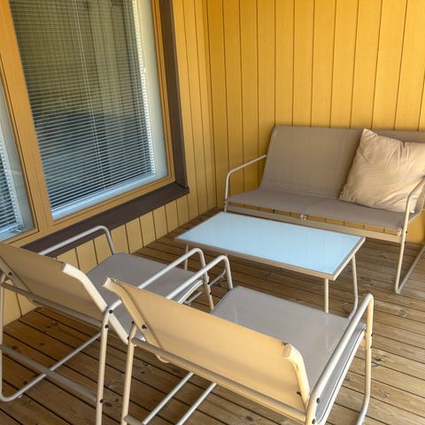 Todella mukavat istua. Muuten en luopuisi mutta tosiaan nykyinen parveke on liian pieni koko setille.