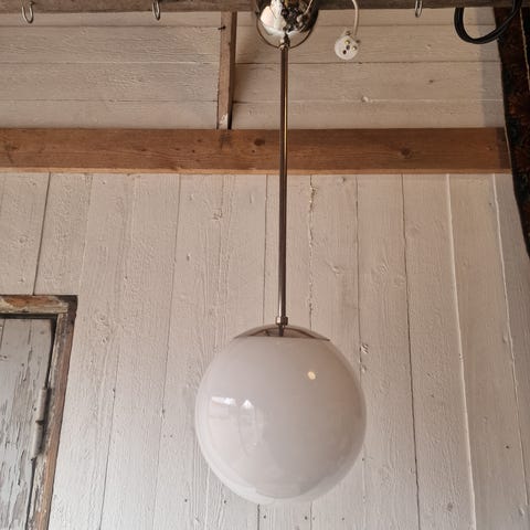 Hakusanat: Valaisin valaisin retro design suunnittelija 40-luku 60-luku 50-luku retro vintage sisustus design nostalgia valaisin lamppu valo messinki kromi nikkeli nikkelöity kromattu opaalilasi pallo lasi opaalilasi itsu idman melva stockmann st orno pso