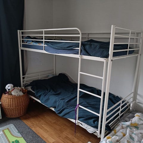 Siisti ja tukeva valkoinen ja metallinen kerrossänky ja lisukkeet 💎