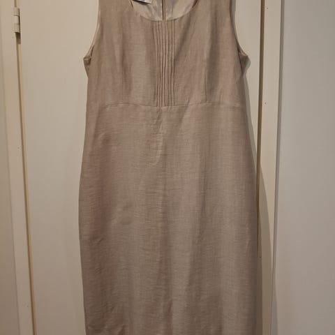Kaunis,kevyt juhlamekko, 90%pellava,10%polyamid vuorillinen. Voi käyttää joko joko vyön kanssa tai ilman.