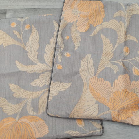 Puuvillaa oleva Pentikin tyynynpäällinen, kuvioina lintu ja kukkiva puun oksa.