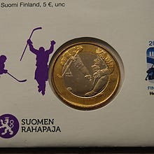 Suomi juhlaraha kolikko. Kaksivärinen metallinen kolikko, jossa on teemaan liittyvä kuva-aihe eri puolilla. Kolikko on läpinäkyvässä suojakotelossa.