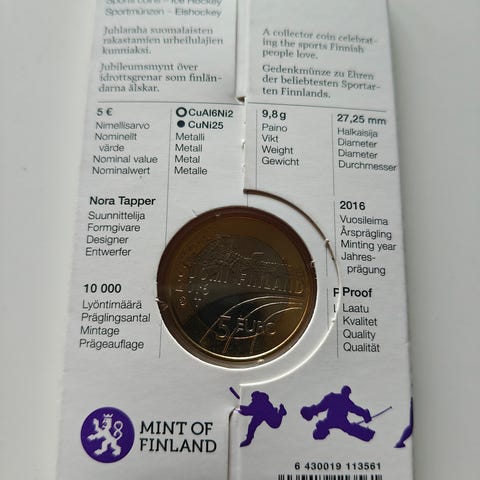 Suomi 2016 5 € Urheilurahat - Jääkiekko UNC