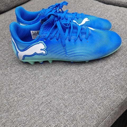 Puma Future 7 play FG / AG jalkapallokengät. Kengän koko on EU 37,5. Väri on pääosin valkoinen. Moninappulainen pohja.