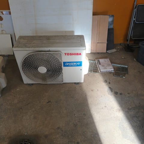Pumpussa kylmäaineet sisällä. Kennossa jälkiä, mutta testattu ja ei ole vuotoa.