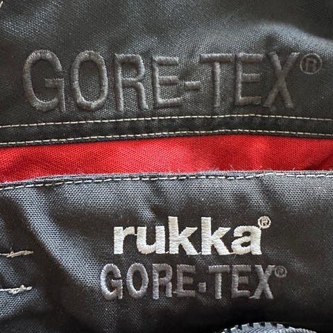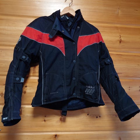 Vanha Rukka ajoasu jouten. Irtogoretexit. Näille en takaa 100% vedenpitävyyttä. Takinkoko 52, housut 50 pitkä. Ollut kokolaillasopiva 180/80 kuskille. Suojissa halkeamia paikoin, eli lienee vaihtokunnossa. Kuvat hieman vääristää positiivisempaansuuntaan, eli käytönjälkeä, ja kulumaa on, mutta silti käyttökelpoiset kamppeet vielä. Koiratalous, eli koirankarvaa taatusti löytyy, vaikka pesukoneessa juuri pyöräytin.
