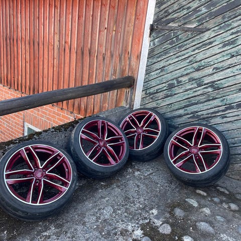 Hyvä setti suoraan alle useaan VAG-autoon, kuten Golf 4, A3 8L, Octavia 1 ja Leon 1M. Pulttijako 5x100 ja keskireikä 57.1 mm, eli menee suoraan ilman säätöä näihin malleihin. Vanteet ihan siistit tarvii vähän rakkautta ja vielä paremmat tulee. Renkaat DOT 2021 Pinta MM suhteen ajaa vielä 3 kesää ainakin. Yksi rengas pitää vaihtaa kun se on repeytynyt sivusta. 235/35ZR19 91W XL. ET 35