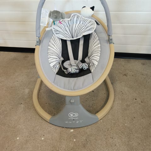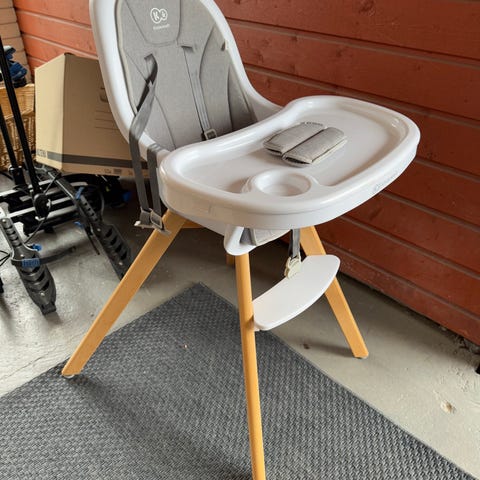 Kinderkraft lasten tuoli. Kuvien perusteella tuoli on pehmustettu ja siinä on säädettävä runko, joka mahdollistaa sekä istuma- että makuuasennon. Tuoli voidaan taittaa kasaan säilytystä tai kuljetusta varten. Soveltuu vauvalle tai pienelle lapselle istuma- ja lepohetkiin kotikäytössä.