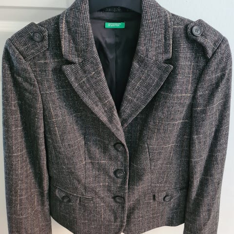 Uudenveroinen Benetton naisten bleiseri, koko S. Väri musta Edessä napitus ja läpälliset taskut, takana muotosaumat. Vuorattu sisäpuolelta.
