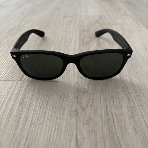 Ray-Ban Wayfarer 2140, 901/58 aurinkolasit unisex-käyttöön. Mustat kehykset ja tummat linssit. Sangoissa merkinnät Ray-Ban-logoista sekä tieto polarisoiduista linsseistä. Valmistusmaa Italia. Mukana kovakotelo säilytystä ja kuljetusta varten. Ei naarmuja, käyttämättömät lasit.