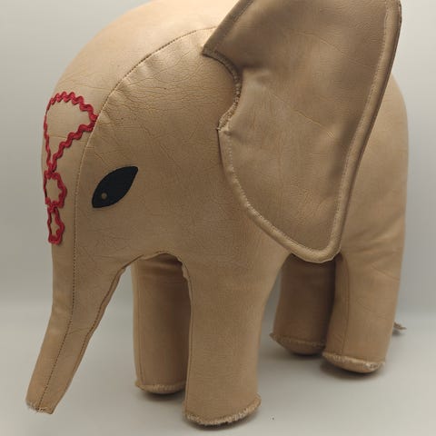 Käsityö: Esineessä on erittäin taidokkaat ja syvät kukkaiskaiverrukset, jotka kattavat koko norsun selän ja kyljet. Silmät ovat perinteistä luu-upotusta.
