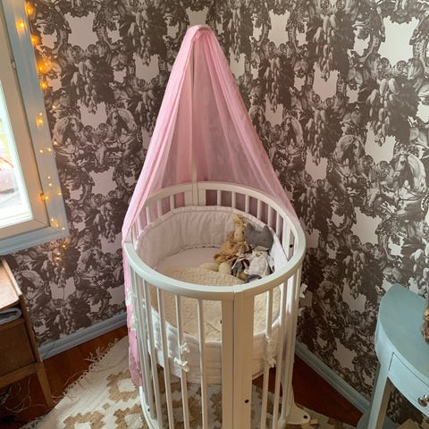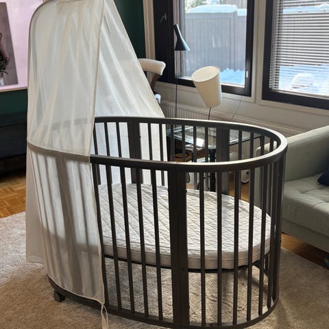 Mukana kaikki sänkyyn kuuluvat osat, plus Stokken muotoonommeltu suojalakana. Patjan suojus sekä suojalakana pesty aina hajusteettomalla pesuaineella.