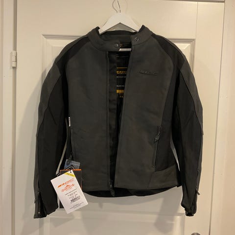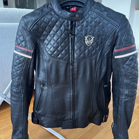 Uusi 42 koon Richa Lausanne Naisten moottoripyörä nahkatakki. Liian lyhyt minulle. Olen 175cm pitkä, joten hihat jäi vähän liian lyhyeksi.