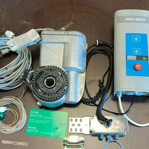 Myydään automatiikka uusi, kaksi kaukoohjainta, jännite 230v oven koko noin 3 kertaa 2 metriä