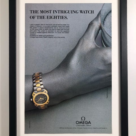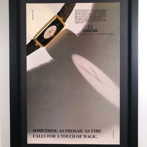 Offered for sale here is a framed original Omega Watch magazine advertisement from 1983.