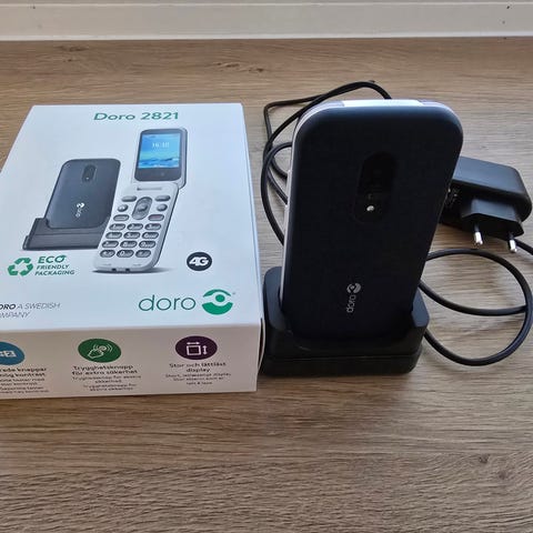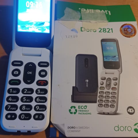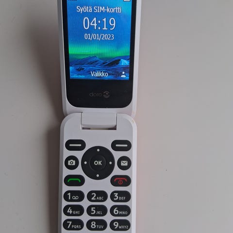 Doro DFC-0390 simpukkapuhelin. Puhelimessa on punainen ulkokuori ja valkoinen sisäpuoli sekä suuret, selkeät näppäimet. Laitteessa on ulkonäyttö, sisänäyttö, kamera ja erillinen lataustelakka. Takakannessa on hätäpainike, ja puhelin käyttää yhtä SIM-korttia (1 SIM -paikka). Soveltuu peruskäyttöön puheluihin ja tekstiviesteihin.